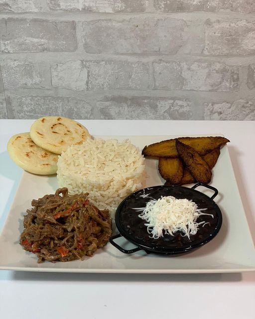 Pabellón criollo: carne, frijoles negros y plátano maduro.